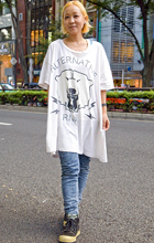 女性のフォトプリント+グラフィティ風のタグが描かれたTシャツ...