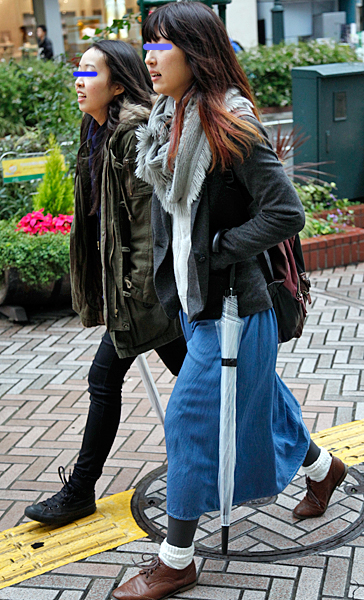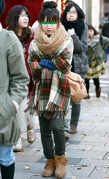 スヌードをだらりとかけただけのスタイルもよく見られた。目新し...