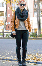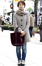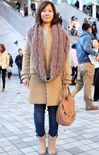 スヌードはアウターと同色もしくは近い色みで合わせて一体感を出...