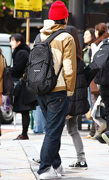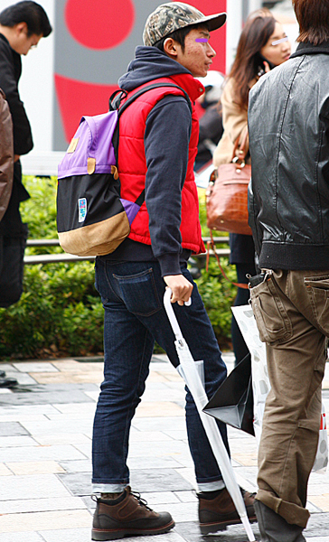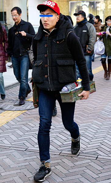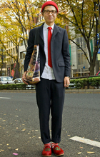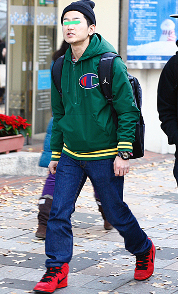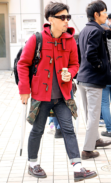 赤いニット帽できちんと感のあるアメカジスタイルが際立っていた...