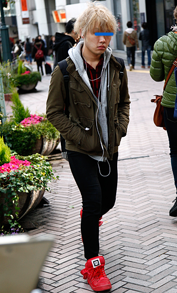 ストリート系の男性には定番と言える赤スニーカー。ナイキやチャ...