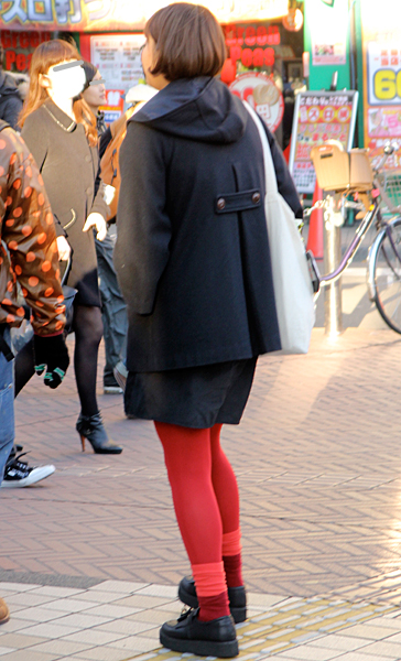 最も多かったのがタイツで赤を取り入れる差し色コーディネート。...