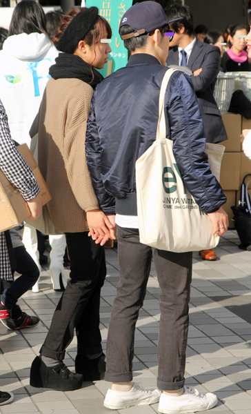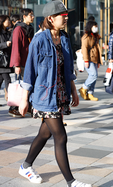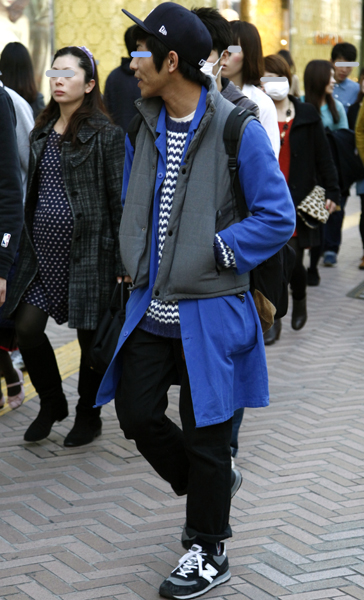 調査当日、渋谷で散見されたアウター二枚重ねのスタイル。ダウン...