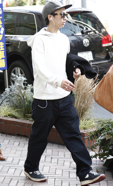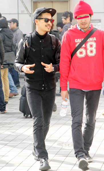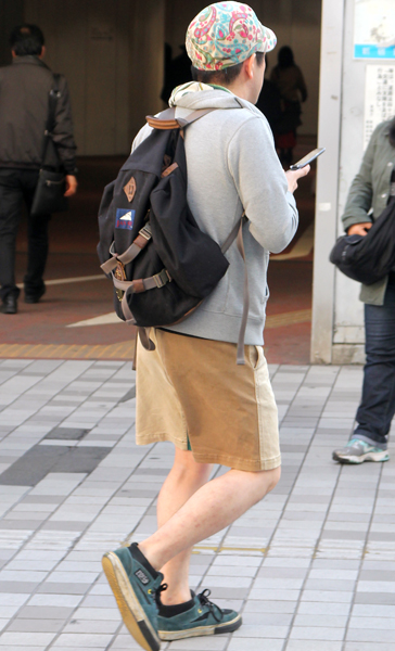 フード付パーカーも増えている。キャップを被っている人でヘッド...