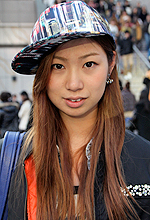 もともとキャップが好きで、たくさん持っています。派手なものは持っていなかったので、これを買いました。雑誌をみて今年キャップが流行ると思っていました。ボーイッシュになりすぎないように、タイトスカートを合わせたり、アクセサリーでアレンジしたりハズしとして使っていきたいです。もっとキャップが欲しいです。髪型はおろしていて、前髪を分けています。巻いたり、ストレートだったりもします。