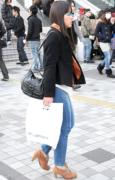 眼球からフレームまでの距離が約3センチ以上ある/頬の下にフレームが接触しているほど大きな黒いフレームのメガネを着用している男女すべて。
