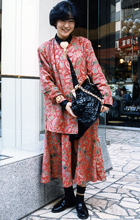 タイト、セミタイトのスカートで、裾丈が膝のお皿の直径の範囲内にあるもの。この範囲なら、裾にフリルなどがあってもよい。