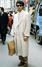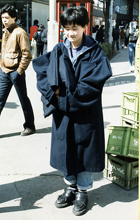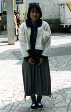 ジーンズ素材を使ったジャケット、コート、スカート。ジーンズ、ダンガリージャケットは除く。紺色以外でもジーンズ素材と判明すれば含む。重ね着でも一番上に着ていても可。