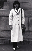 霜降りやヘンリーボーンなどを典型とする、遠目には無地に見えるがトーンの濃淡があるもので、手で触ってザラザラ・ボコボコ感のある素材でできたジャケット・コート類。表面がなめらかな印象を与えるフラノ、チェックなどの大きな柄物、あるいは完全に無地のものは除く。