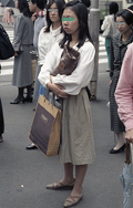 黒いエナメル、ビニール素材が使ってある靴。一部分でも可。ヒールの高さは問わない。