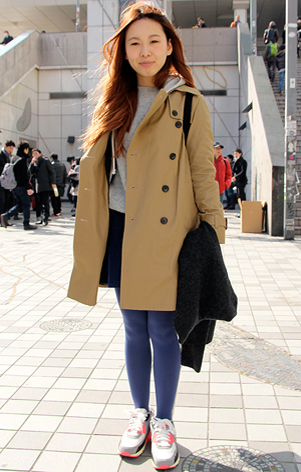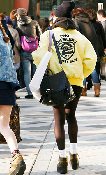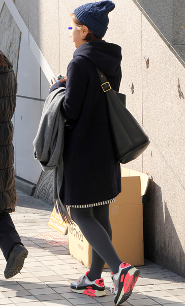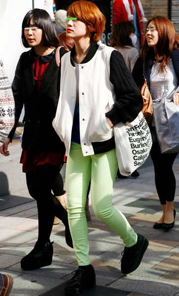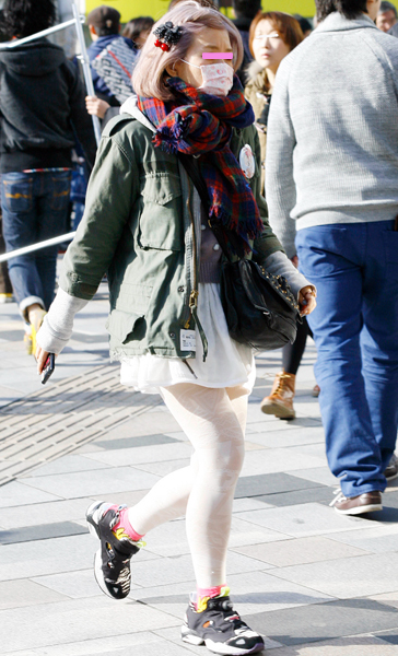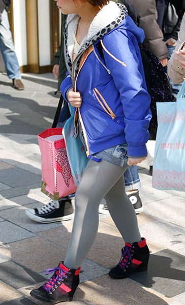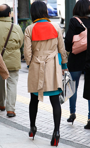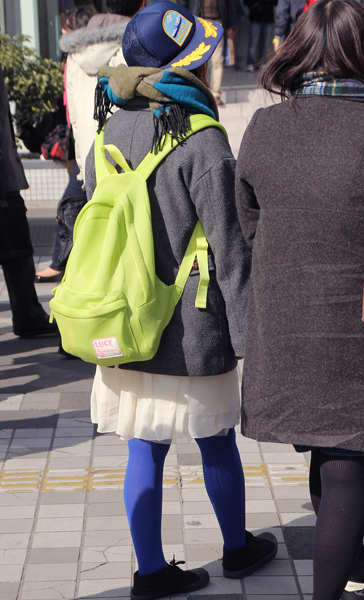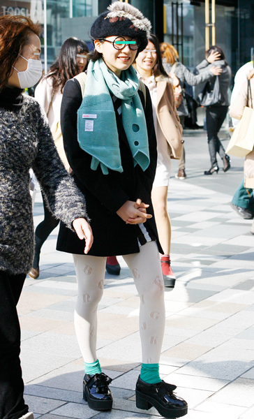 2月までは黒タイツ×黒靴が主流だったが、3月に入ってカラフル...