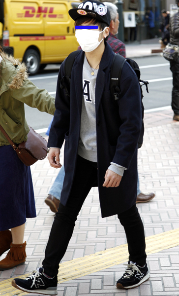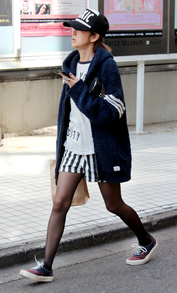 全身黒コーディネートにも+ニット帽と白ソックスでシティボーイ...