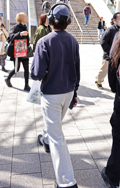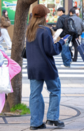 ロングヘア+キャップの女性も散見された。黒ではなくネイビーが...