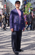 肩パッドの入ったダブルブレストのジャケットで敢えておじさんっ...