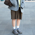 このジャケットはグレーが流行し始めた頃に購入しました。他のアイテムに影響が大きすぎず、使いやすいグレーとオーバーサイズなシルエットがいいと思いました。普段はカジュアルな服が多く、グレーのスウェットなどもよく着ます。ブラウンのアイテムも多く持っていて、今日のようにブラウン×グレーの配色も好みです。