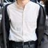この日は、中に着用しているシャツのストライプがブラウンで、レザーになっているアウターの襟元の色味を拾うことで統一感を持たせたスタイリングを意識しました。