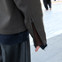 アウターの裏地がフラシ仕立てとなっており、裏地が縫い付けられていないデザインのため、裾がレイヤードされているように見えると思います。お気に入りの一着です。
