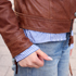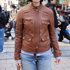 A レザージャケットを着るとバイカーファッション的になりやすいのでもう少しきれいに着たいと思ってストライプシャツをレイヤードしました。女性らしさを出したくてヒールのポインテッドトゥを履きました。最近細みシルエットの気分なので、全体的にジャストサイズにまとめました。色味は春感を出したくて茶色と青、シルバーで爽やかな印象になるようにしました。