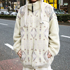 ボアアウターは寒さ対策としてあたたかいので選びました。オーバーだから全部ゆったりでまとめました。同系色で冬なので白を着たくなる気分です。薄底のスニーカーは女性らしさがあるから。淡いピンクもスタイルに合わせやすいです。長めのパンツをはいたときにトゥーだけ見えるのがよくて薄底スニーカーを履きます。