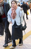 スウェットパンツにダウンジャケットといったリラックスカジュア...