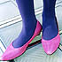 いつも前髪のあるヘアスタイルなんですが、今回は、美容師さんに「ユニークな前髪にしたい」と注文しました。前髪のラインが後ろまでつながっているんですよ。いつも地元の美容室で切っています。このパンプスは、ピンクの靴を探していた時に見つけて、カッティングがきれいなのが気に入って買いました。たくさん歩いても疲れなさそうなところもいいな、と思って。