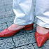 この靴はアンジェロフィガスのものなんですが、セールで半額になっていて、とにかく安かったんです。赤い色がきれいだし、履き心地もいいですよ。ちょっと前はスニーカーばかり履いていたんですが、最近は女の子らしいスタイルに移行していて、ヒールのある女の子っぽい靴をよく履くようになりました。