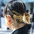 髪の毛はカラーもカットも、いつも自分でやっていて、今回のセクションカラーも自分で染めました。えりあしと前髪を黄色っぽい金髪にブリーチして、その後美容室のカラーモデルでより一層白っぽくブリーチしてもらいました。