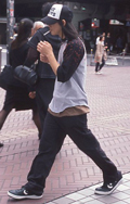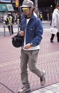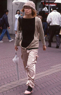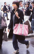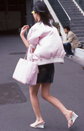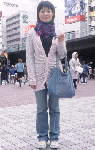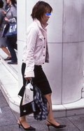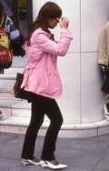 明度、彩度、共に広くピンク系のアイテムを身に付けている人すべて。柄のあるアイテムの場合、メインの色味がピンク系であれば含む。素材は問わない。