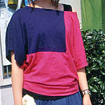デザイントップスの他に、1枚以上トップスを重ねて着用しているスタイル。デザイン・トップスを2枚以上はもちろん、うち1枚はふつうのトップスでも可。