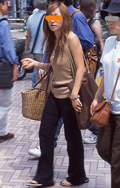 トップスかボトムス、またはトップスの上に羽織っていたりと、いちばん上に着用するものがブラウン色の女性すべて。カーキは含まない。柄は、小さいものでブラウン色を損なわない程度であれば含む。切り替えしなどで、ほかの色が混じっている場合も同様に、ブラウン色を損なわない程度であれば含む。