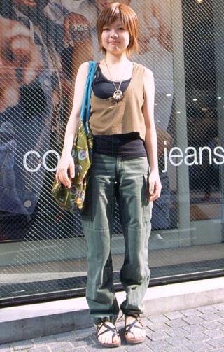 うち、ブラウン・トップス着用