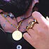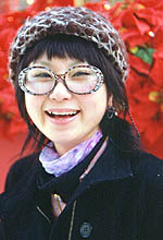 このメガネは文化屋雑貨店の物で、柄と大きさが気に入って買いました。メガネはこの他に黒縁など4個持っていて、どれもフレームは大きめです。メガネチェーンはいつも付けていて、今日のは文化屋で買った物です。この他に金色のも持ってますよ。