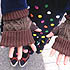 ワンピースは古着です。裾がヒラヒラしているところと、カラフルな色にひかれて買いました。いつもスパッツと重ねて着ていてます。この他には渋谷のクリスプで買った古着のプリーツスカートもよく履きますね。黒の膝上丈のスカートです。