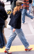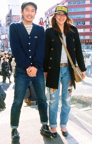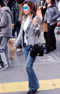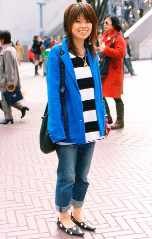 いわゆるブルーのデニム素材のジーンズ。基本的には5ポケットとするが、若干デザインが入ったものでもアウターなどで判別しにくい場合は含む。丈は問わない。