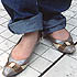 ジーンズは彼と共用で履いているGO WESTのもの。カジュアルな太めのパンツに女っぽさを入れたかったので、ゴールド×シルバーの靴を合わせてみました。キラキラしているものが好きなんです。