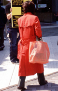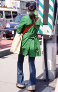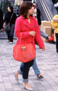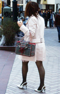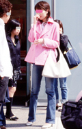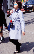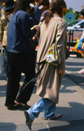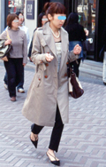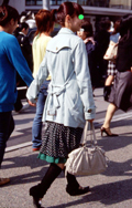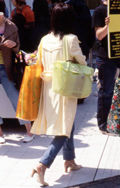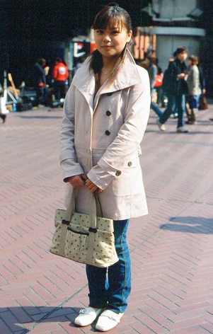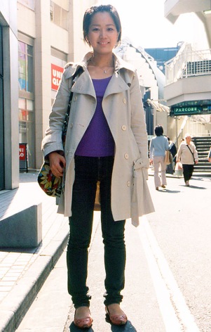 新宿では、トレンチとジェリーバッグを同系色でコーディネートす...