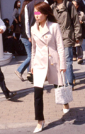 OLさんにはパステル調の淡い色のトレンチが支持されている。白...