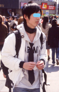 ■ズームアップアイテム定義長めの前髪を左右どちらか寄りに分けており、額に斜めにかかるように流している男性。