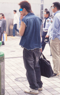 いわゆる藍染めによるデニム素材のロングパンツ全般。厳密には混紡素材のものでも構わない。