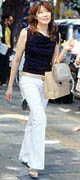 コットンまたはストレッチ素材/モモの部分はぴったりとしていてややブーツカットのシルエット(クロップト・タイプも少なくないようです)/なかには裾にスリット(ジッパー式で開閉するものも)やドローコード、リボンなどが付いているものもあります