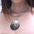 このネックレスは、父のNYのおみやげです。もともと革ひもに付いていたんですが、ゴージャスにしたくて、チェーンに変えたんです。アクセサリーは大ぶりのものが好きで、けっこう持っています。キラキラしているものが好きですね。