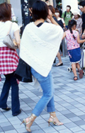 トップスの上からちょっと掛けて着る着方をしている女性すべて。掛け方は問わず、カーディガンやジャケットなども前を開けて着用していたり、ボタンをひとつだけしか留めなかったりなど、ドレープ感が出るような着方(=羽織るような着方)をしていれば含む。カーディガンやシャツ、ジャケット、ストール、ボレロ、ポンチョなど、アイテムは問わない。