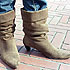 ブーツはエスペランサのものです。カーキが好きだし、くしゅくしゅっとした感じのが欲しかったんです。この他にブーツはウエスタンと黒のロング2足を持っています。毎年冬場はブーツを履くことが多いですね。ジーンズのブーツインしたり、パンツを合わせることが多いですね。