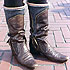 このブーツはグラップバニスターのものです。今シーズン一番人気の商品だそうなんです。外側が革で内側がスウェットの2重になっている凝った作りで、ヒールも低いし歩きやすいですよ。パンツにもスカートにも合うし、使えます。私はデニムをブーツインして履くことが多いですね。