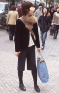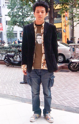 テーラードでシングル前のもの。ボタンの数は問わない。素材も問わない。織り柄や部分的に柄が入っていたりチェック柄なども、全体の印象が黒い色であれば含む。
