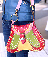 ストリート実査を終え、2年前と比べると、黒やクリームベージュ、白といったベーシックな色のものだけでなく、緑や赤、黄色、ブルーなど、カラフルになり、表面もパンチングだったり、色違いのレザーとのパッチワークが施されていたり、フリンジ、スタッズ、ビジュー、リボンといった装飾のパーツが施されるなど、デザイン性溢れるものが増加。比較的シンプルな装いのアクセントとして、「アクセサリー感覚」で支持されているようだ。