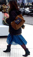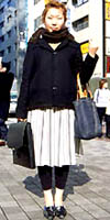 ・ ウール系のプリーツスカートも、鈍いオレンジや緑、ターコイズなどちょっとレトロな色合いのものが、オシャレ上級者=ストリート×モード系の子に支持されていた