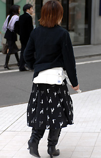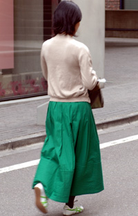 裾がひらひらと揺れるスカート。形や素材、色、柄、ディテールは問わない。