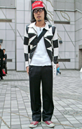 男性白トップス
