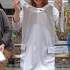 買い物に来ました。ラフォーレのアンダーザガーデンでワンピースを1万6,800円で購入しました。白のサテンで、シルバーの切り返しがあり肩紐がリボンになっているものです。